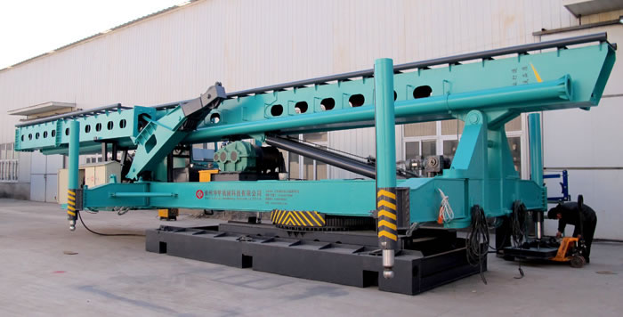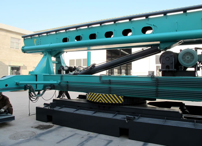 樁機(jī)主架采用折疊式,使臂架的收放更加便捷、高效,避免上節(jié)滑道的二次安裝,同時(shí),上下兩節(jié)間采用了法蘭式剛性聯(lián)接,使得臂架在使用過程中更加穩(wěn)定,使樁機(jī)在施工中不再出現(xiàn)臂架晃動(dòng)的現(xiàn)象。