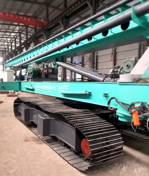 近年來,隨著樁機市場的不斷發(fā)展,對樁機的要求也是日新月異。為了滿足現場對樁機的快速短程轉場要求,我公司開發(fā)了新型液壓馬達驅動式履帶底盤樁機。該樁機在步履式樁機的基礎上改進發(fā)展而來,在繼承以下特點的基礎上又增加了新的功能特點: